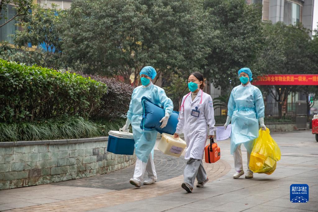 12月16日,在重庆市永川区中山路街道红河路社区,流动接种小分队上门为老年人接种疫苗。