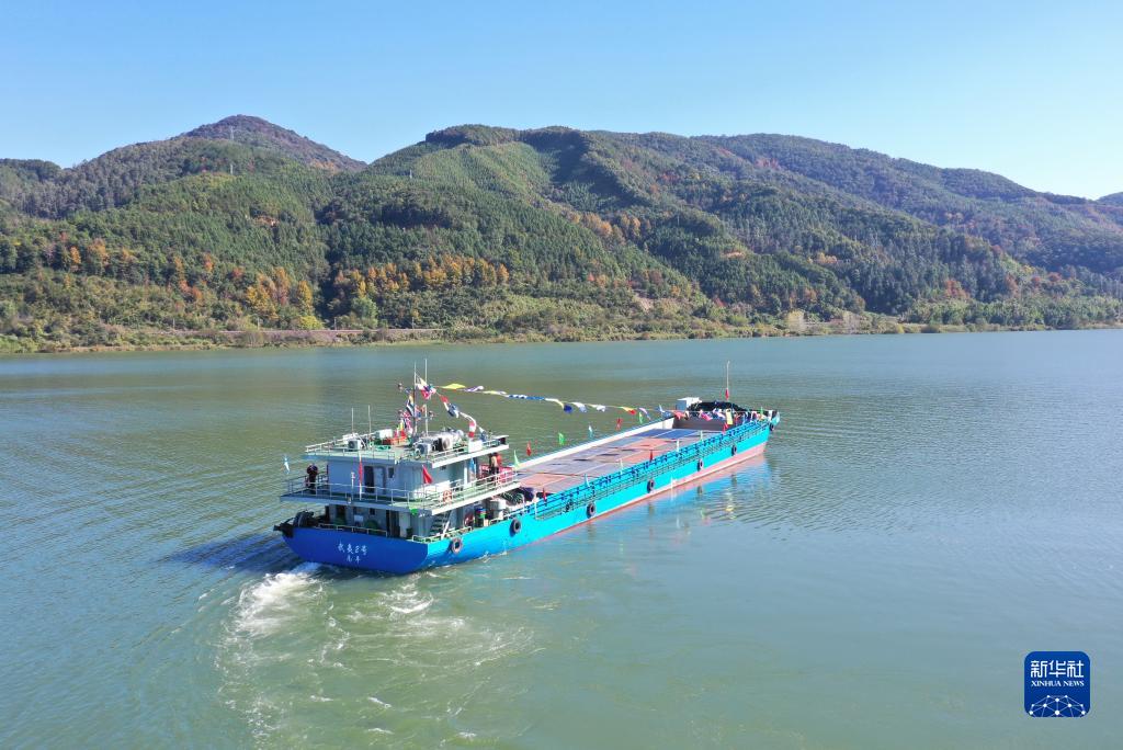 12月18日,在福建南平港延平新城港区洋坑码头,满载竹制品、石英砂等货物的“武夷2号”新能源货船鸣笛离港,标志着闽江干流正式恢复通航,拉开了福建省集装箱江海联运的序幕。
