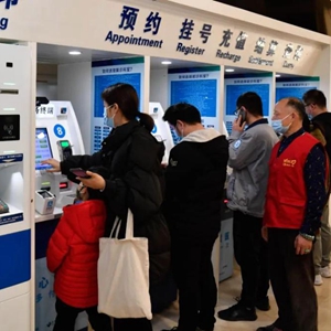 群众使用自助机进行挂号等操作 黄宗治 摄