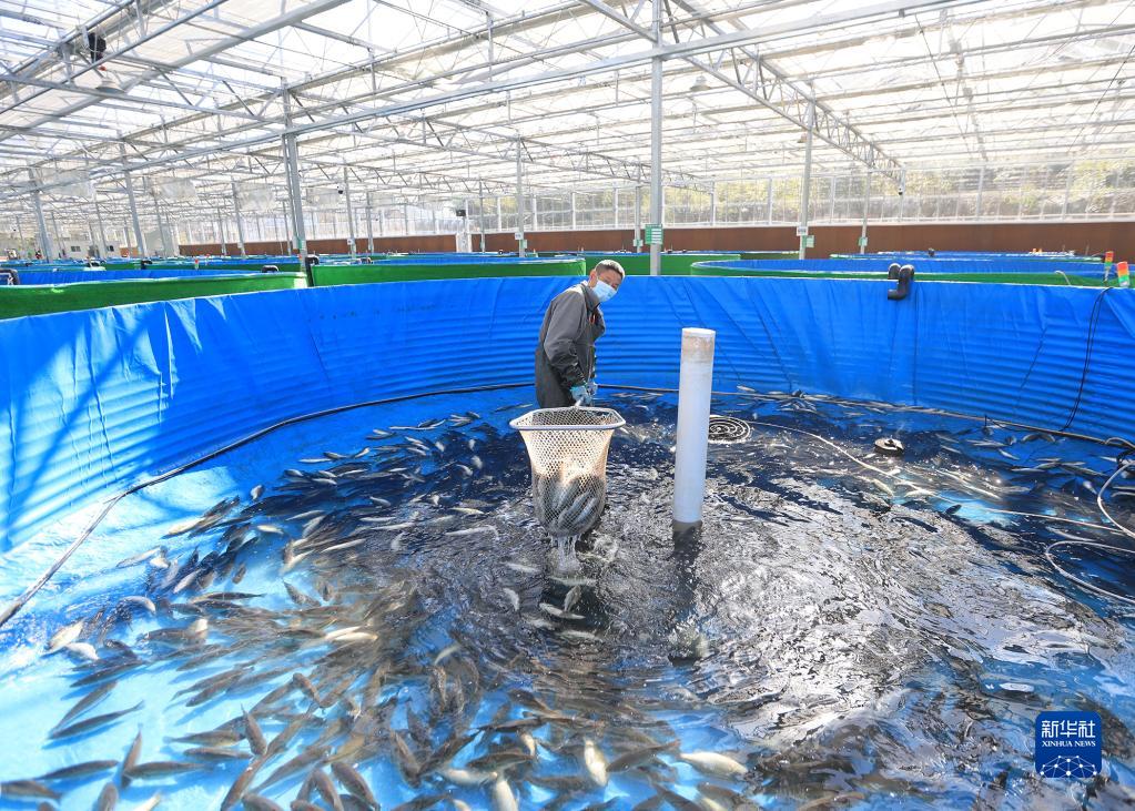 12月19日,在安吉县天荒坪镇的智能化养鱼基地里,工人在打捞鲜鱼,准备外销。