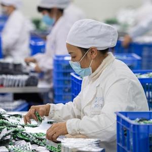 12月19日,西安一家药企的工作人员在外包装车间作业。