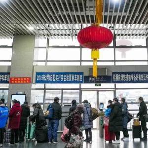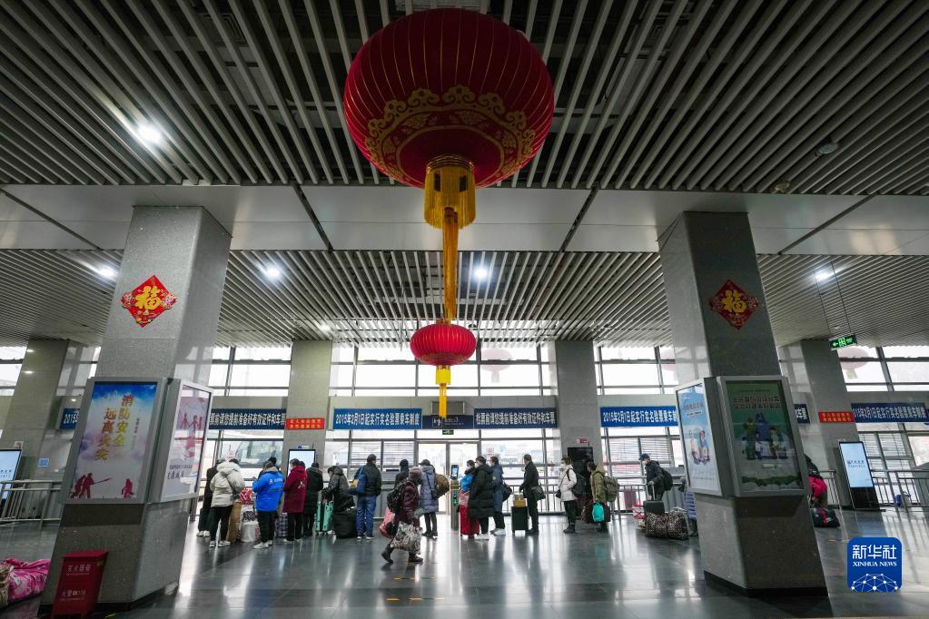 12月20日,在北京四惠长途客运站,旅客在排队检票。