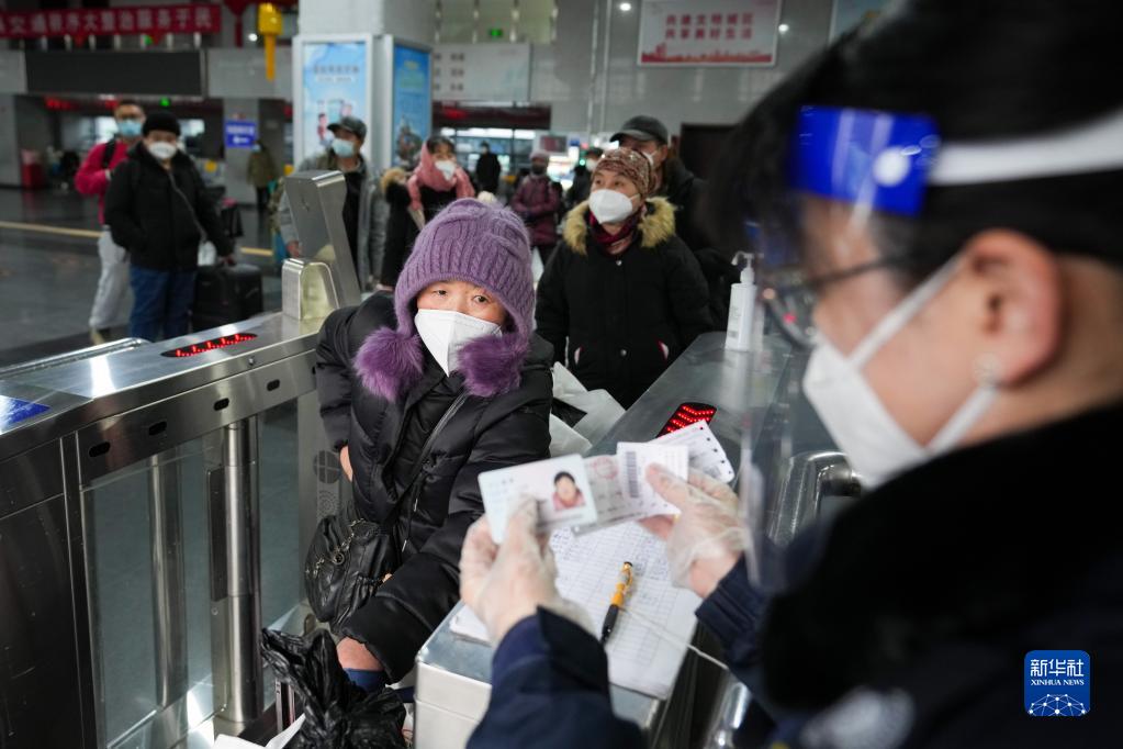 12月20日,在北京四惠长途客运站,前往河南南乐的旅客在检票准备乘车。