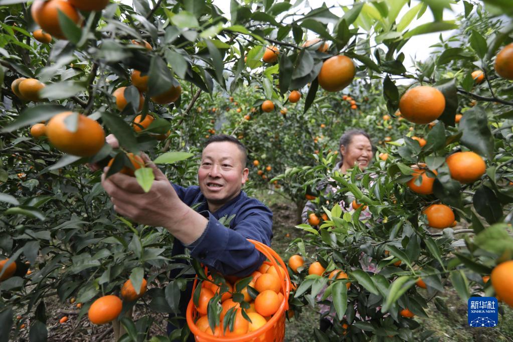 12月20日,村民在贵州省贵阳市开阳县云开街道石头村沃柑种植果园采摘沃柑。