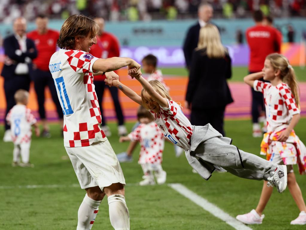 莫德里奇与自己的孩子们玩耍的场景