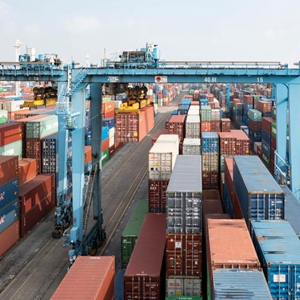 图为江苏省港口集团南京港龙潭集装箱有限公司港口(无人机照片)。(新华社记者李博摄)