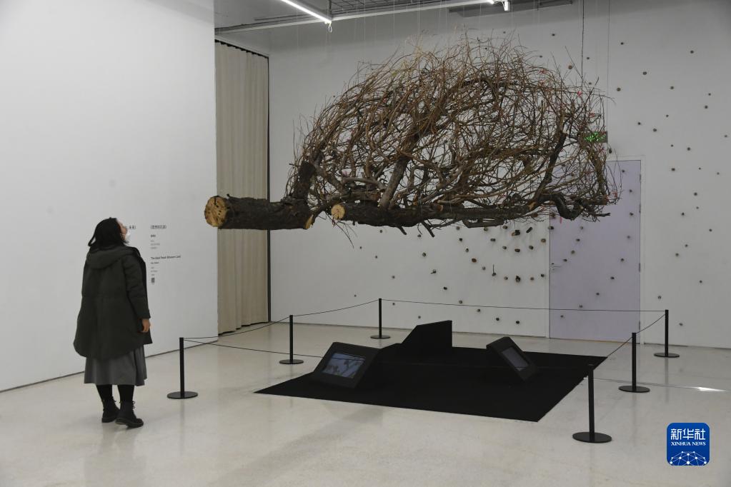 12月21日,在北京时代美术馆,观众参观《声·生》当代艺术展。