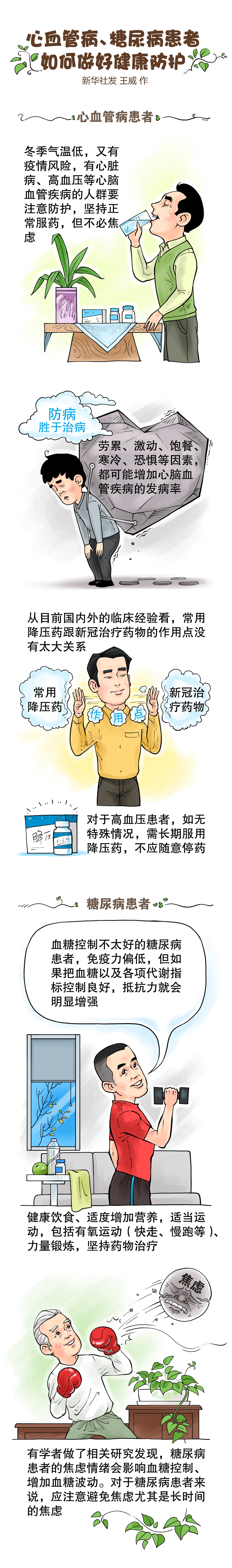 冬季气温低,又有疫情风险,有心脏病、高血压等心脑血管疾病的人群要注意防护,坚持正常服药,但不必焦虑。