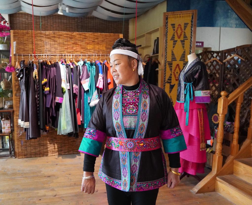 韦清花身着自己绣制的侗族传统服饰。新华社记者林凡诗 摄