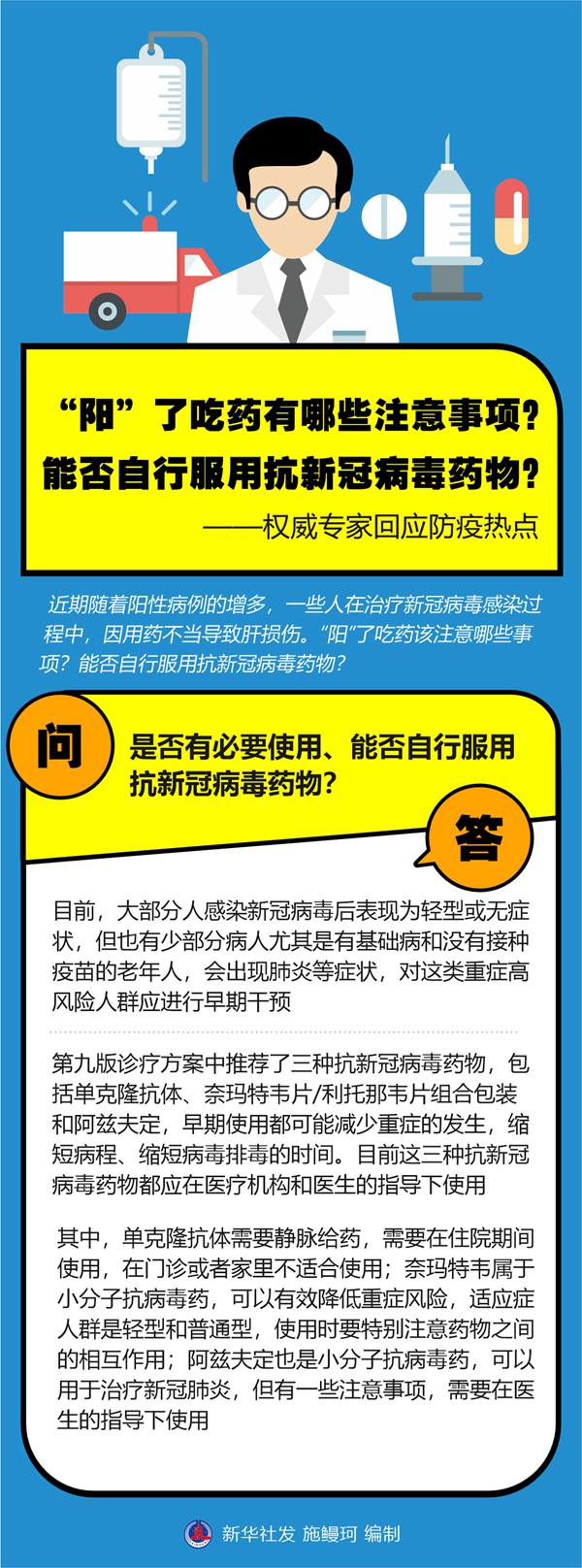 新华社北京12月22日电 题:“阳”了吃药有哪些注意事项?能否自行服用抗新冠病毒药物?——权威专家回应防疫热点