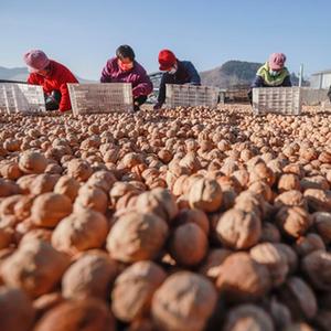 新年、春节临近,河北省遵化市各家核桃专业合作社一片忙碌景象,农民们在场院和车间忙着晾晒、精选、包装核桃,供应“双节”市场。
