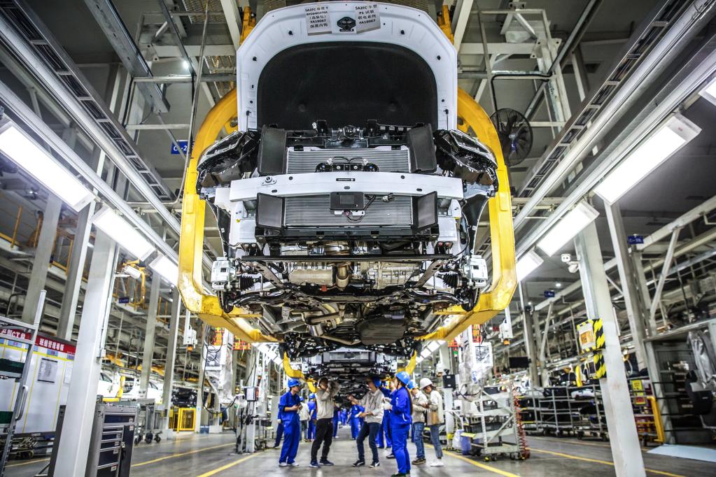 正在组装的新能源汽车。(比亚迪集团 供图)