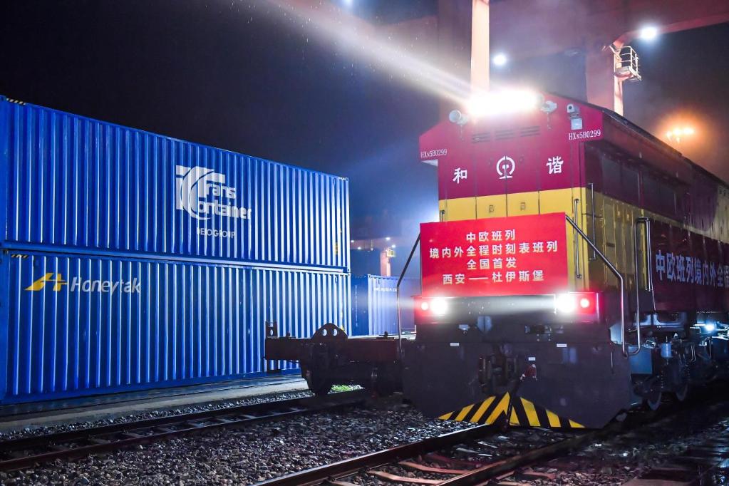 夜色中开行的中欧班列长安号。(西安国际陆港多式联运有限公司供图)