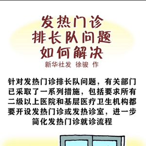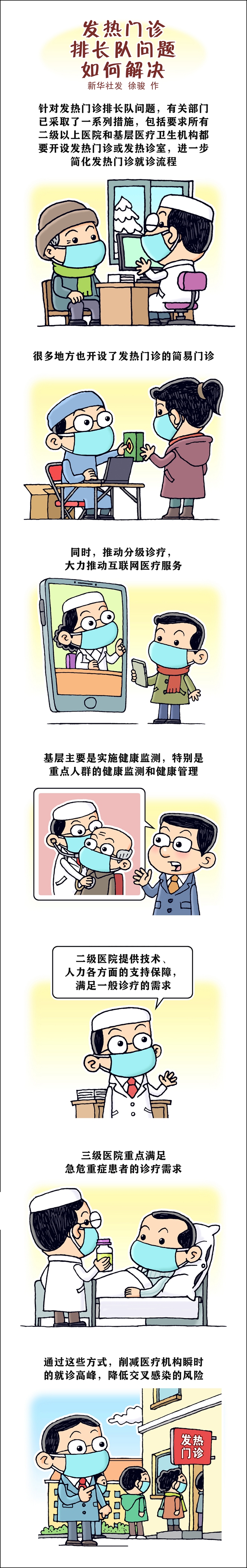 国家卫生健康委医政司司长焦雅辉表示,有关部门已采取了一系列措施,包括要求所有二级以上医院和基层医疗卫生机构都要开设发热门诊或发热诊室,进一步简化发热门诊就诊流程,很多地方也开设了发热门诊的简易门诊。