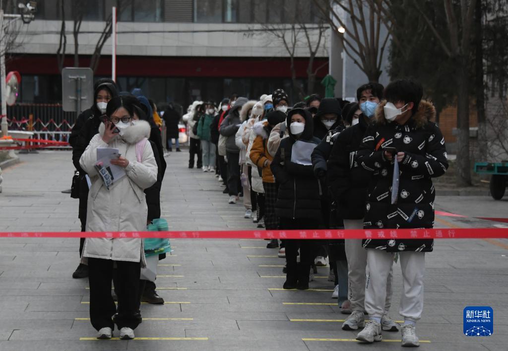 12月24日,在北京外国语大学考点,考生排队准备进入考场。
