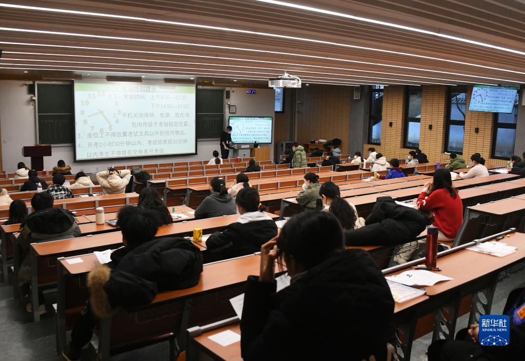 12月24日,在北京外国语大学考点,监考教师在考试前宣读考生须知。