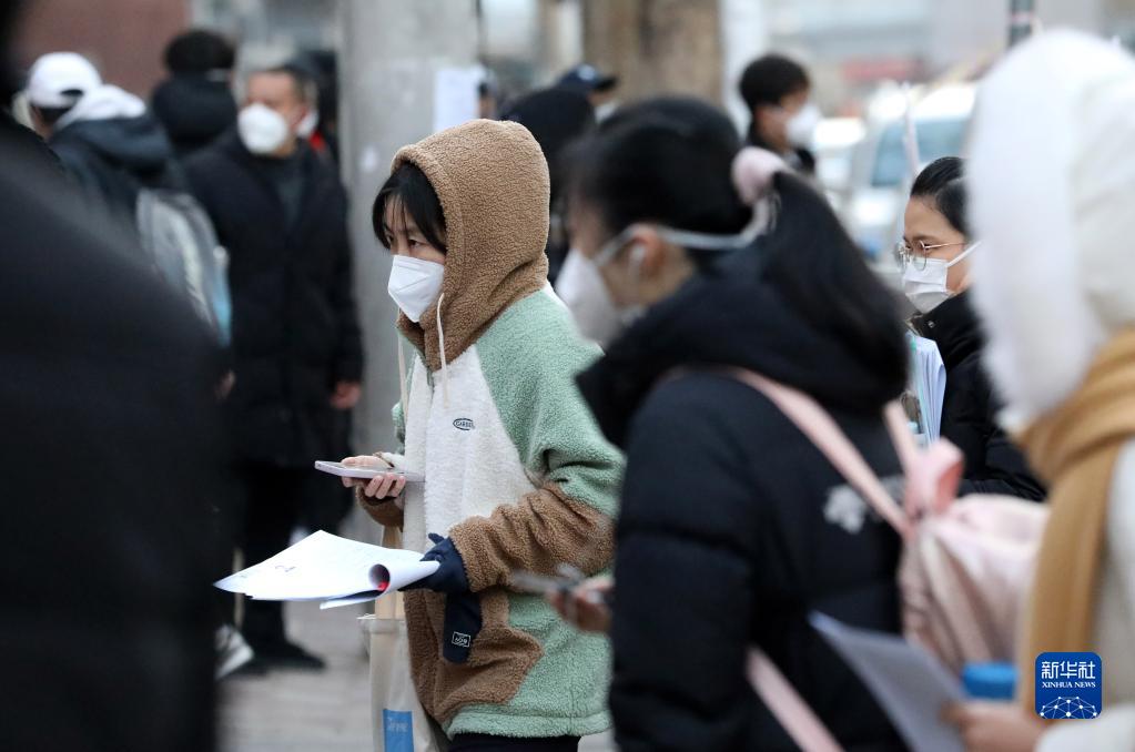 12月24日,在河北省石家庄市第三十八中学考点,考生们有序进入考场。
