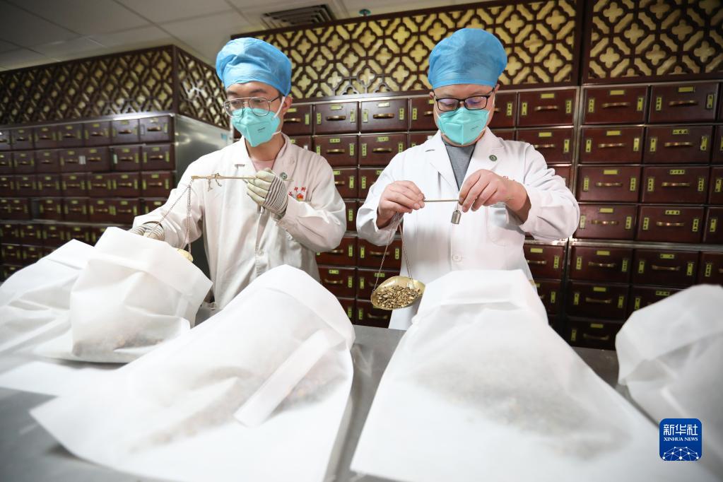 12月23日,在甘肃中医药大学附属医院中药房,药师调配中药方剂。
