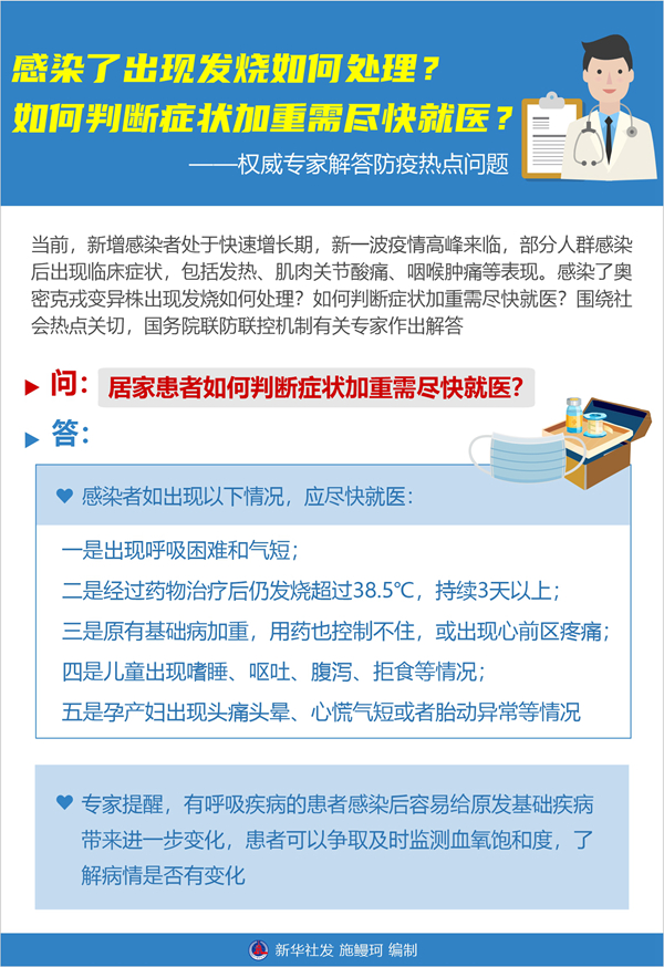新华社北京12月24日电 题:感染了出现发烧如何处理?如何判断症状加重需尽快就医?——权威专家解答防疫热点问题