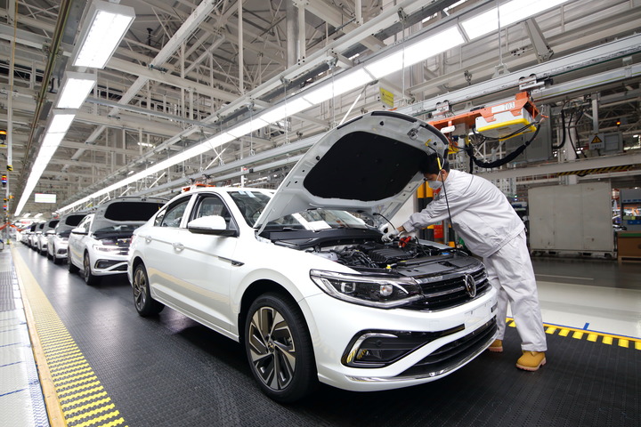 12月20日,在位于山东省青岛市即墨区的一汽-大众华东基地总装车间,工人在装配汽车。新华社发(梁孝鹏摄)