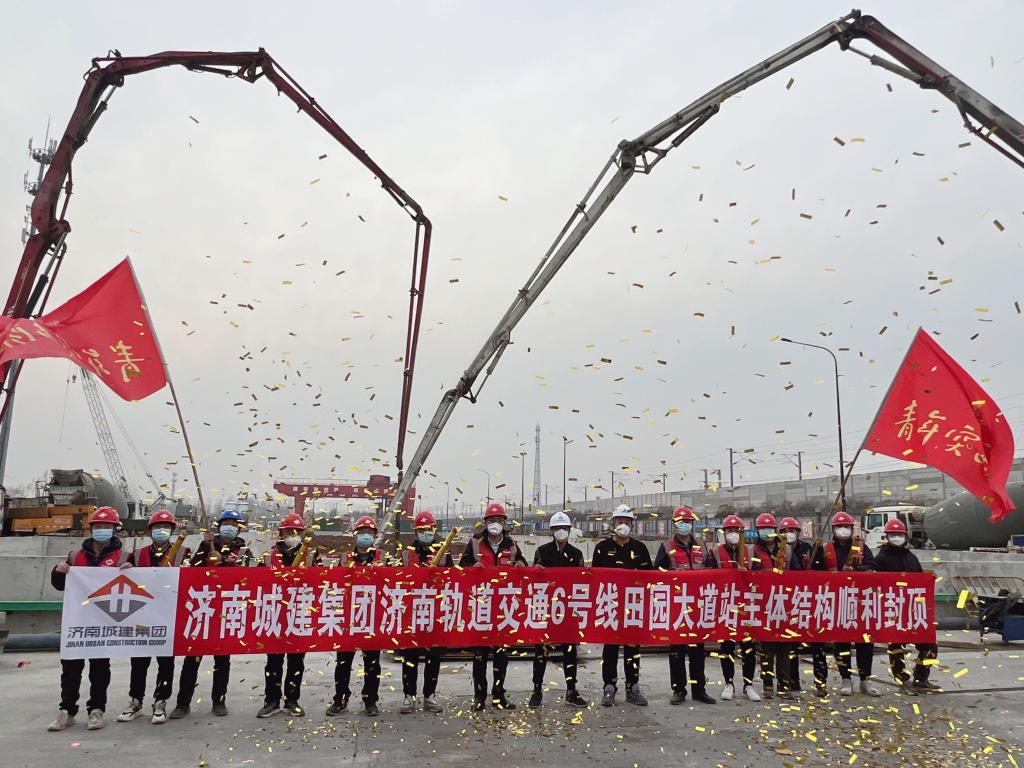 12月20日,济南轨道交通6号线田园大道站主体结构顺利封顶。(受访者供图)