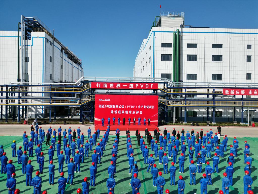 东岳集团万吨聚偏氟乙烯(PVDF)全产业链项目建设成果观摩点评会。(受访者供图)