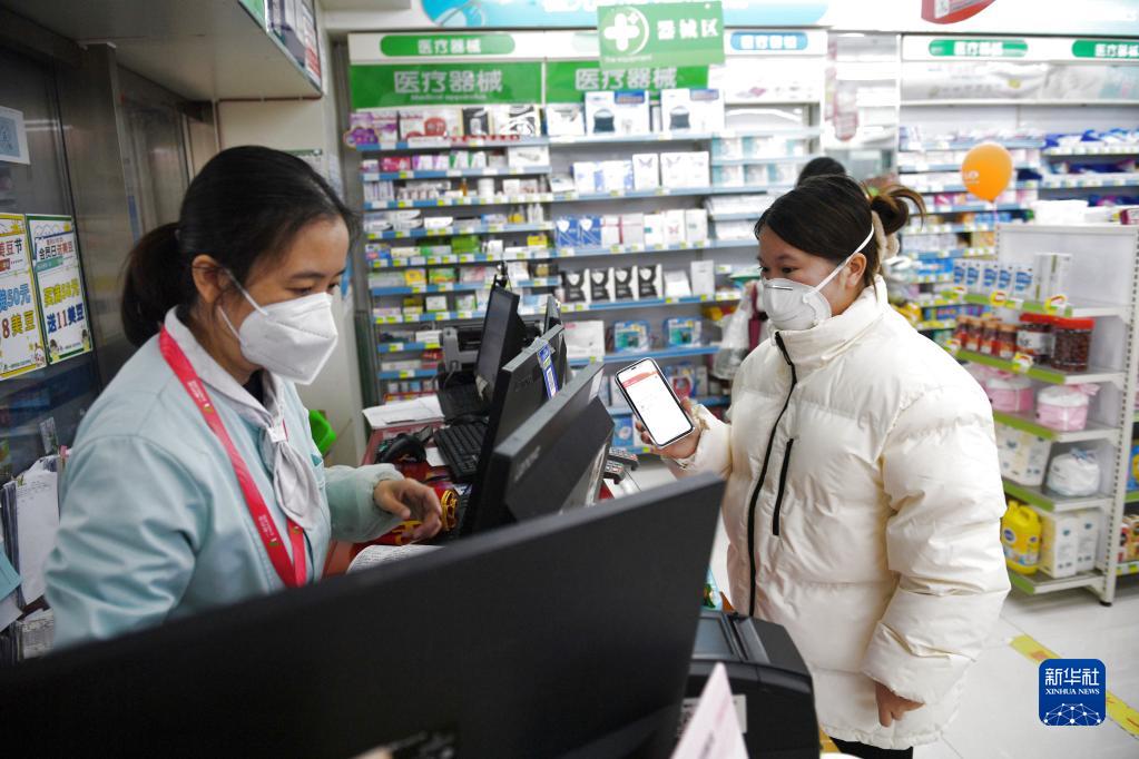 12月24日,市民在贵阳市云岩区一家药店领取退烧药。