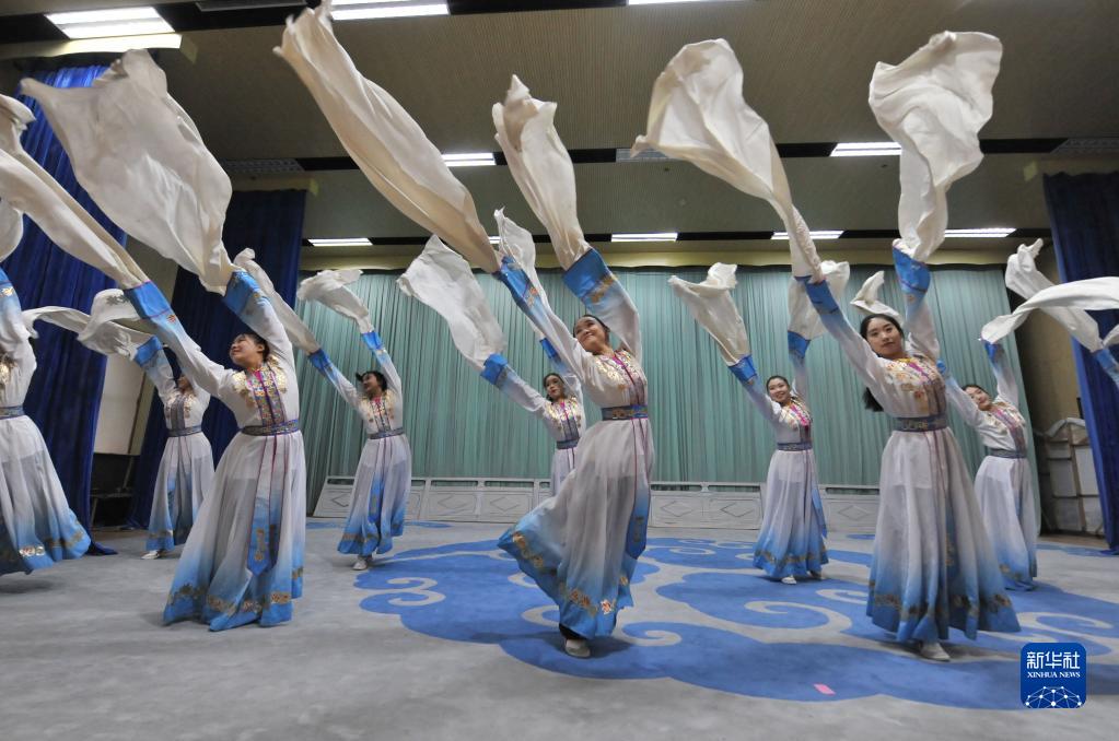 2022年1月19日,石家庄市评剧院一团的青年演员在石家庄大剧院排练厅排练。近年来,河北省石家庄市评剧院一团发挥非物质文化遗产传承示范基地的作用,挖掘和培养青年艺术人才,加强经典剧目的保护和传承力度,定期组织青年演员带着经典剧目参加进农村、进社区、进校园等基层惠民演出活动,让更多的人了解喜欢中国传统评剧艺术。