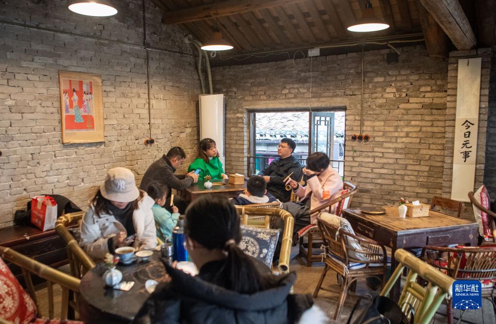 12月24日,市民游客在位于重庆解放碑商圈的著名景点山城巷一家特色茶楼内聊天。