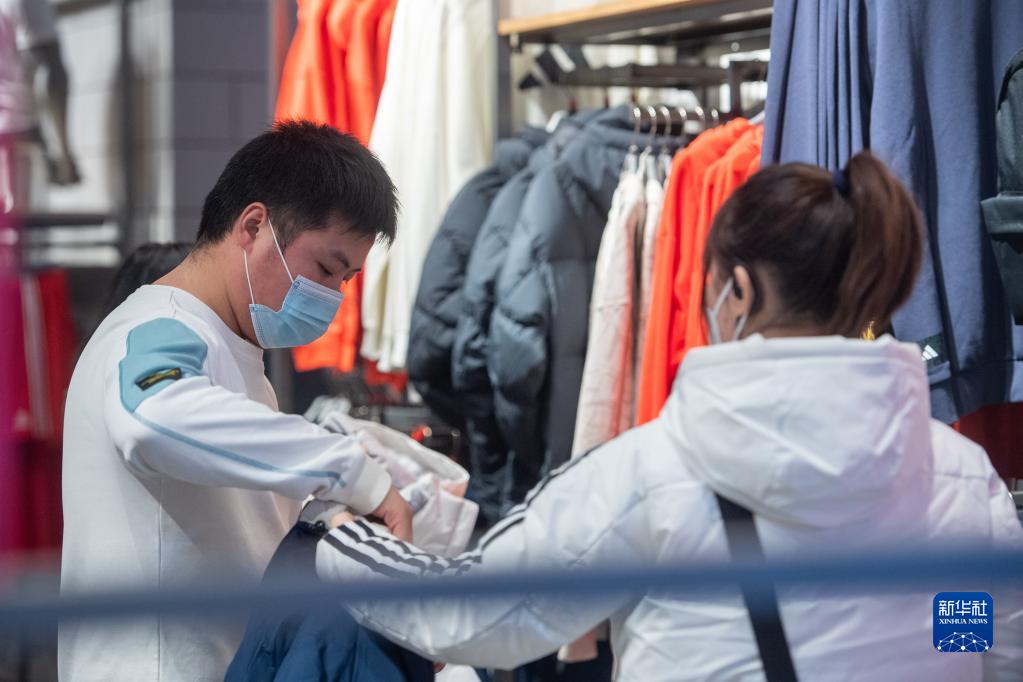 12月23日,在位于重庆解放碑商圈主打运动品牌的重庆八一广场内,市民游客选购商品。