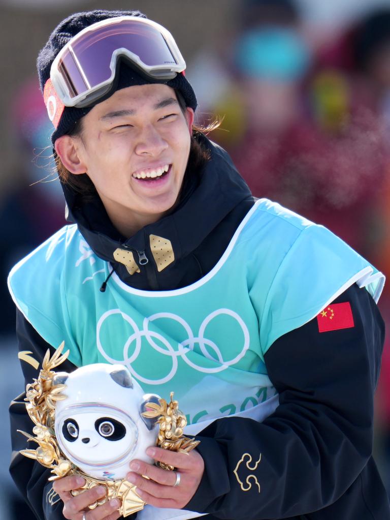 苏翊鸣在北京冬奥会颁发纪念品仪式上(新华社记者李一博摄)