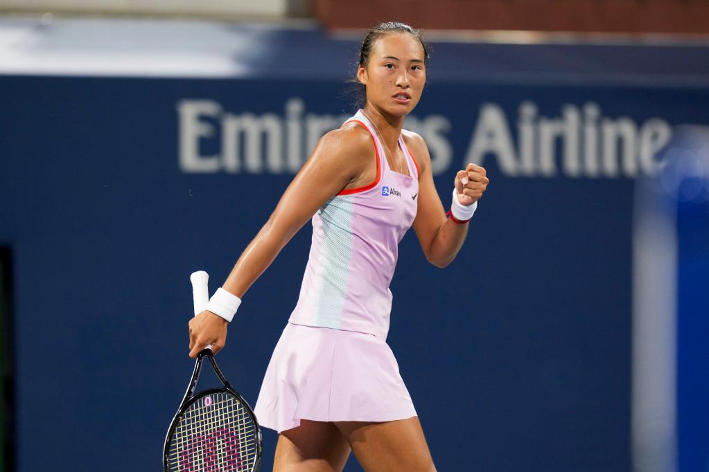 郑钦文在比赛中。(新华社记者刘杰摄)