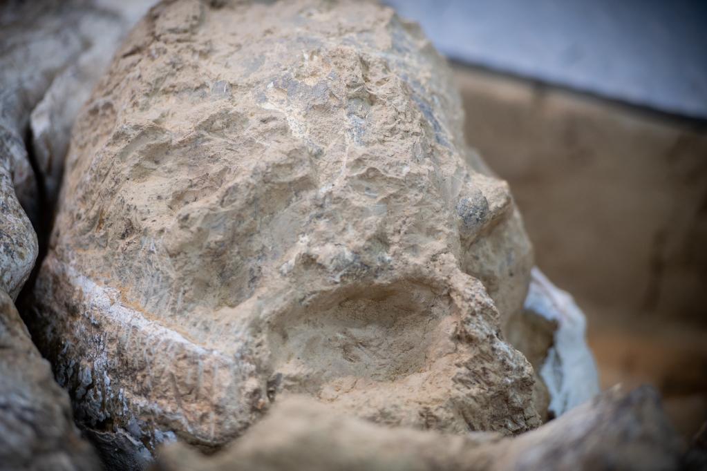 在头骨化石提取现场,记者在1000多平方米温湿可控、功能完备的考古方舱内看到,“郧县人”3号头骨周围布满了动物化石,考古队员使用电动的风刻笔,宛如牙医一般一点点地把头骨化石周围的胶结物剔除。半年多以来,考古队不断地将人类化石、动物化石和石制品从堆积物和胶结致密的钙质结核体中剥离,使百万年尘封土裹的远古人类遗珍逐渐显露。