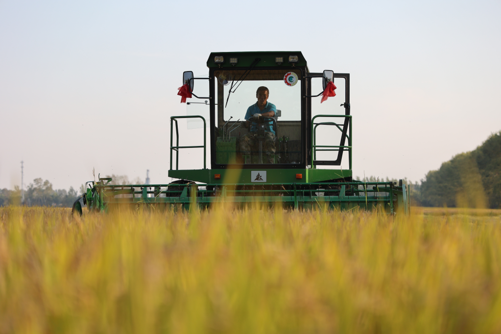 北大荒集团军川农场有限公司水稻收获现场。(受访者供图)