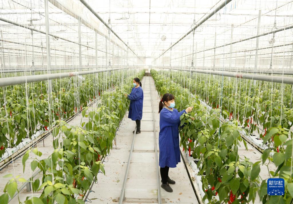 12月27日,在邢台市南和区贾宋镇一家现代农业园区,工人在管护辣椒。