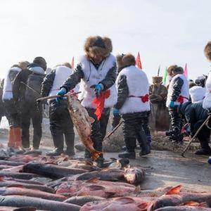 当日,“2022黑龙江冷水鱼·冬捕季”冬捕大典在黑龙江省牡丹江市镜泊湖西湖岫举行,头网捕捞出23.8万斤鱼,现场还举行了“头鱼拍卖”、传统秧歌表演、炖鱼品鉴等活动。