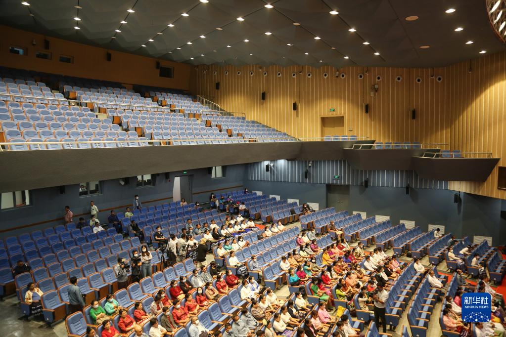 12月27日,人们在仰光参加中国援缅甸国家剧院维修改造项目移交仪式。