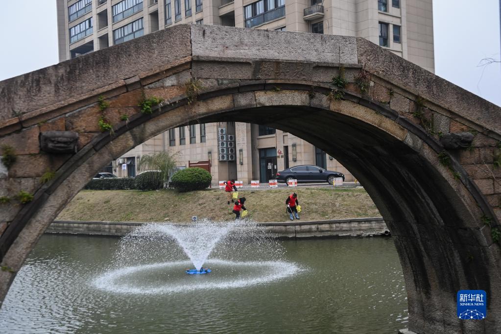 12月28日,龙泉街道的党员志愿者在永兴桥畔的河道边巡查、清理垃圾。