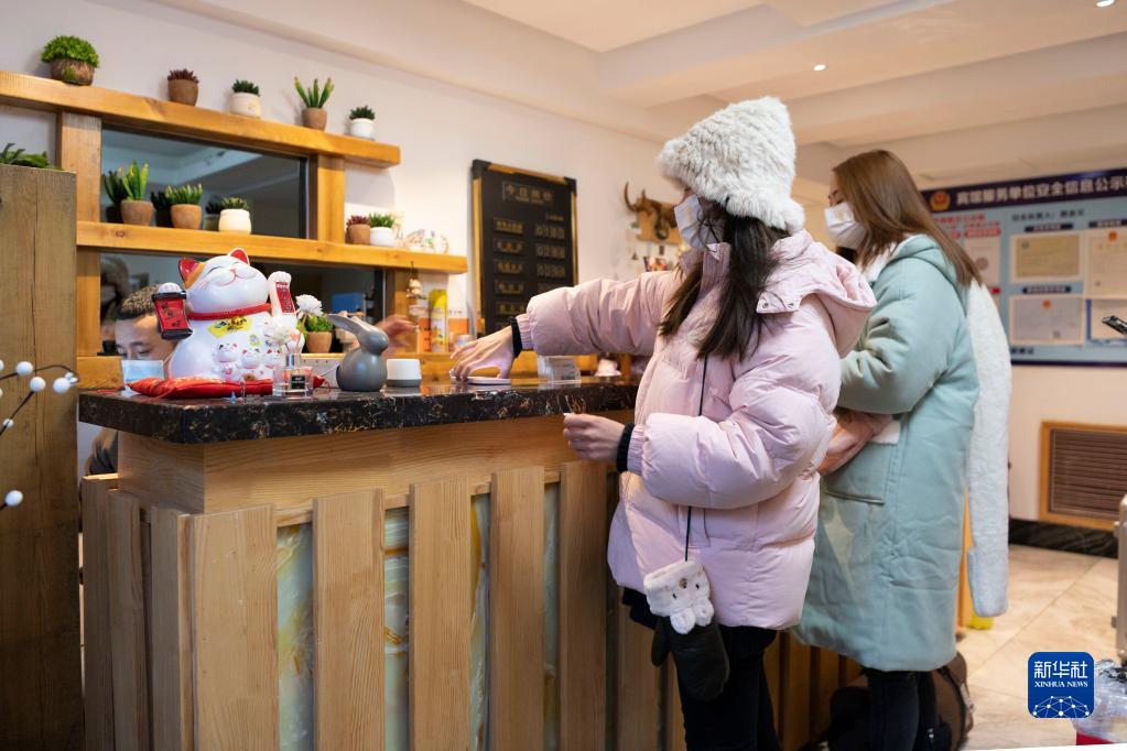 12月14日,游客在雪乡景区的一家民宿办理入住手续。新华社记者 谢剑飞 摄