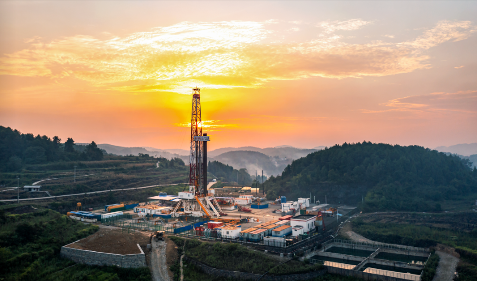 涪陵页岩气田钻井施工现场。(涪陵页岩气田供图)