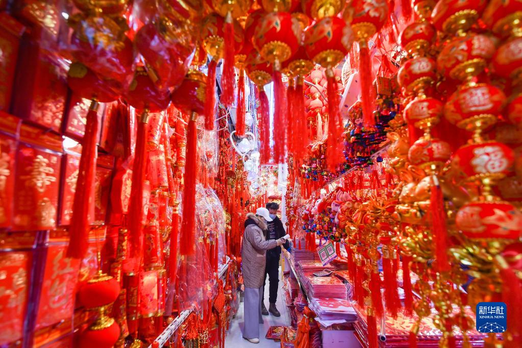 12月29日,人们在江苏省南京市一家小商品市场选购新年饰品。