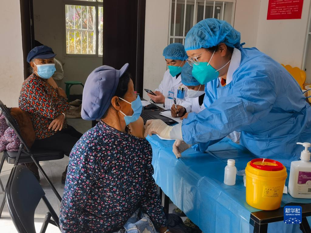 曲靖市会泽县待补镇地处乌蒙山区,医务人员进村入户为60周岁及以上老人开展新冠疫苗接种工作。信息登记、测量血压、耐心询问是否有既往病史……在疫苗接种现场,医务人员依次对老人进行身体评估,确保无接种禁忌后为他们完成接种。