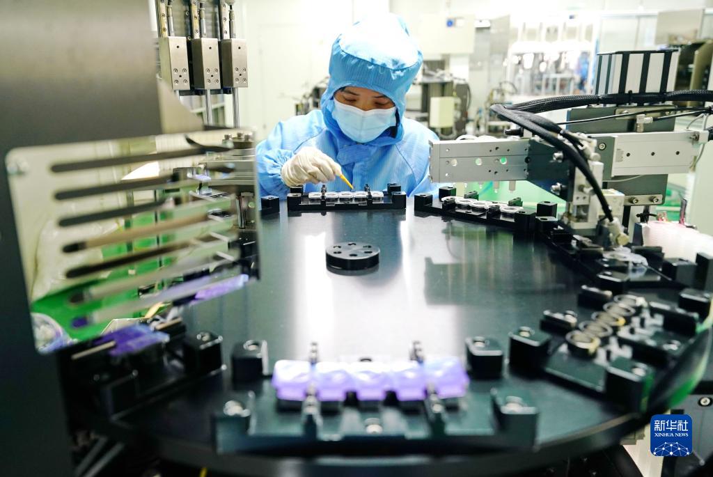 12月29日,一家隐形眼镜企业的工人在生产线上工作。