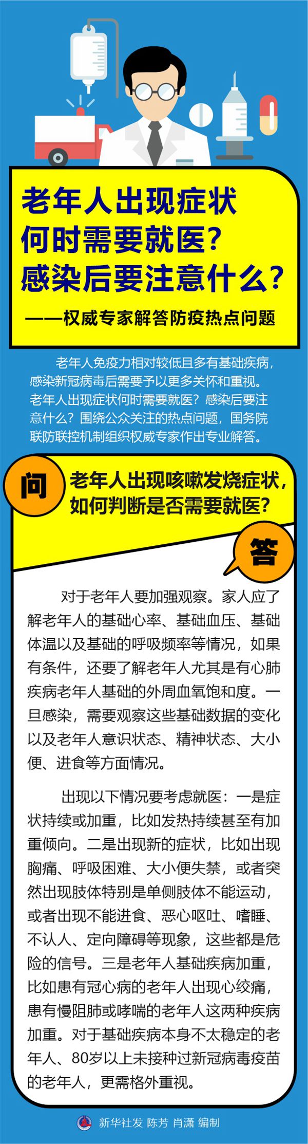 新华社北京12月29日电 题:老年人出现症状何时需要就医?感染后要注意什么?——权威专家解答防疫热点问题