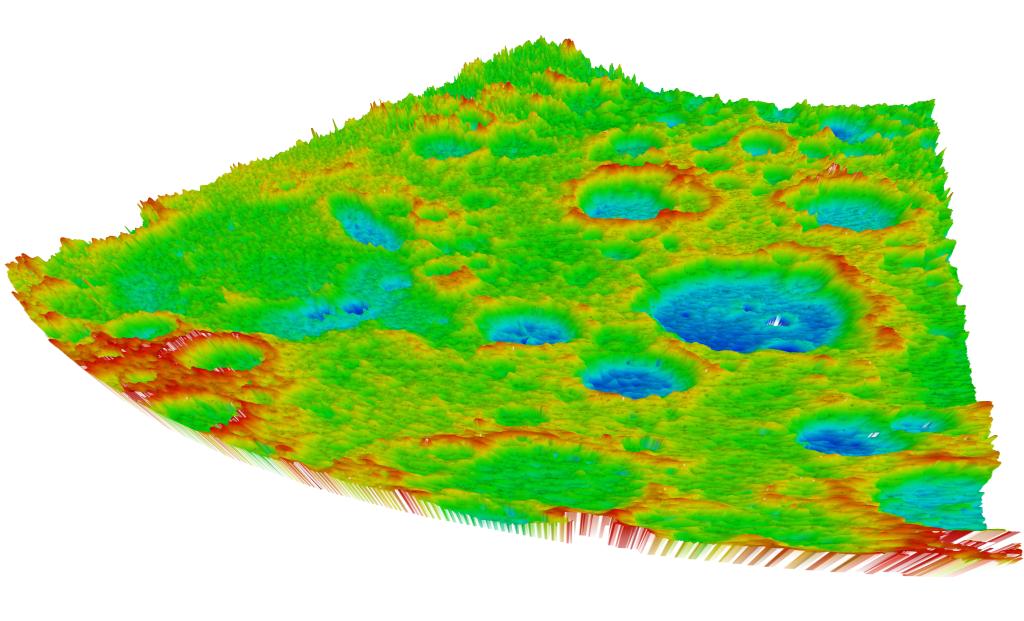 “中国复眼”项目一期拍摄的月球环形山地基雷达三维图像。(北京理工大学重庆创新中心供图)