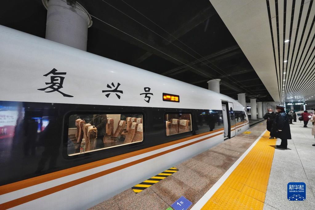 12月30日,由唐山开往北京的首趟G8802次列车停靠在唐山站。新华社发(赵亮 摄)