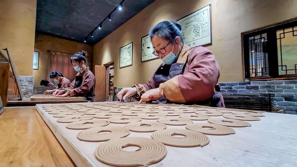 “新机器的加入不仅提高了产香效率,还确保了香品质量。”生产车间负责人杨俊明指着前不久刚投入使用的压条机说,“机械化程度提高后,制作流程也规范了,周边村民培训后很快就可以上岗。”