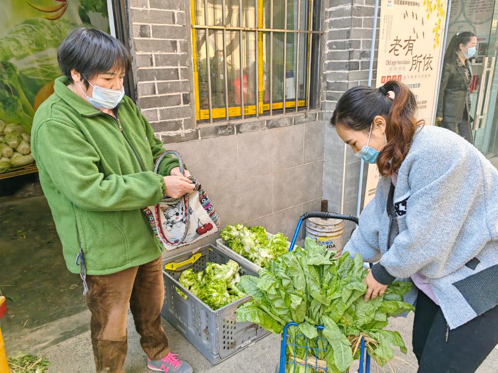 玉林北路和苑小区社区居民在楼下小菜店买菜。新华社记者董小红 摄