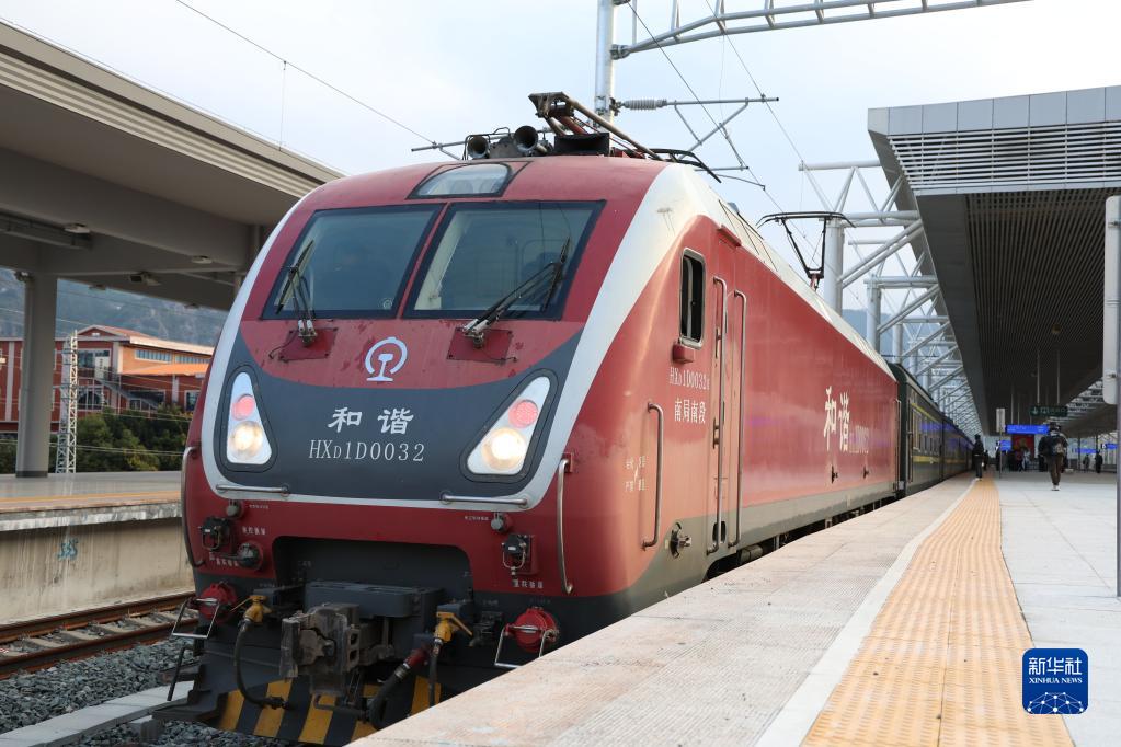 12月30日,在兴泉铁路泉州站,T8010次列车即将发车。新华社记者 周义 摄
