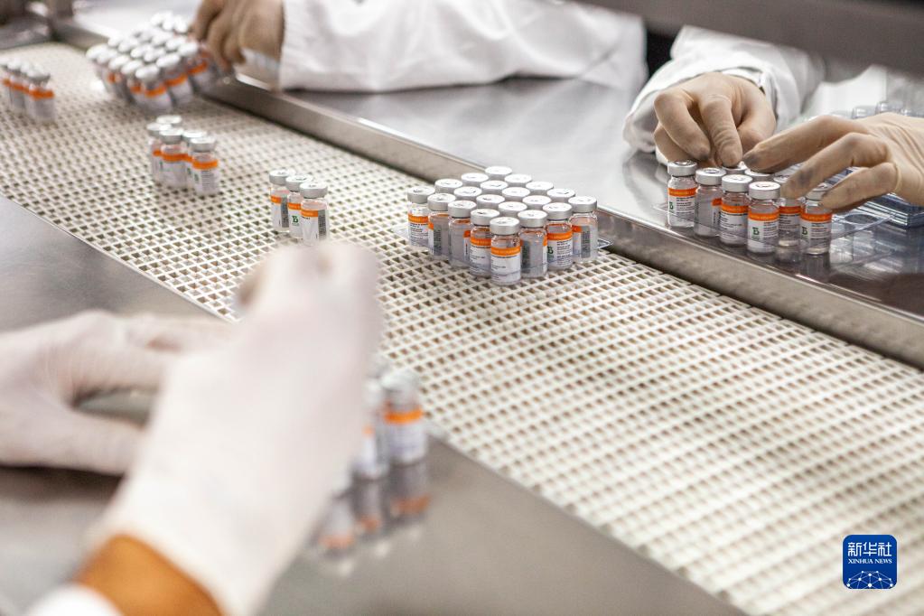 这是2022年8月31日,工作人员在巴西圣保罗州布坦坦研究所的克尔来福新冠疫苗生产线上工作。自2020年6月以来,巴西布坦坦研究所与中国科兴公司开展了包括新冠疫苗Ⅲ期临床试验在内的多项临床研究。新华社发(巴西布坦坦研究所供图)